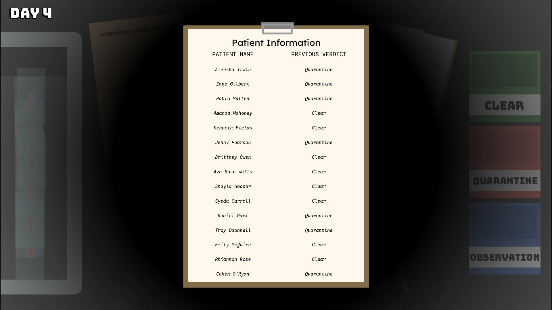 An outbreak has occurred, and you've been hired to screen blood samples for infections. The only problem is that new information keeps coming out that makes your screenings invalid. And so, you must re-test the same group of fifteen patients over and over and over as more and more information gets released.
